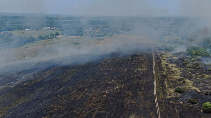 A tűzoltók drón segítségével felderítették a lángoló területet, az utómunkálatok során pedig további izzó gócok után kutattak. Hőkamerás felvételt készítettek a területről, meggyőződve róla, hogy a tűz nem terjedt tovább az erdősávban.