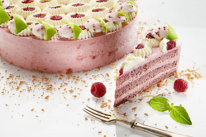 Roppanós réteg, málnás áztatóval átitatott piskóta, málnás-fehércsokoládés krém, citromos-bazsalikomos felvert ganache, málna lekvár és málnás meringue alkotják a tortát. A csipkét a torta tetején a citromos, bazsalikomos felvert ganache idézi, melyek közeit málna lekvár tölti ki. Liofilizált málnadarabokkal megszórt meringue-gekkel és zöldre színezett fehércsokoládé lapkákkal díszítjük.