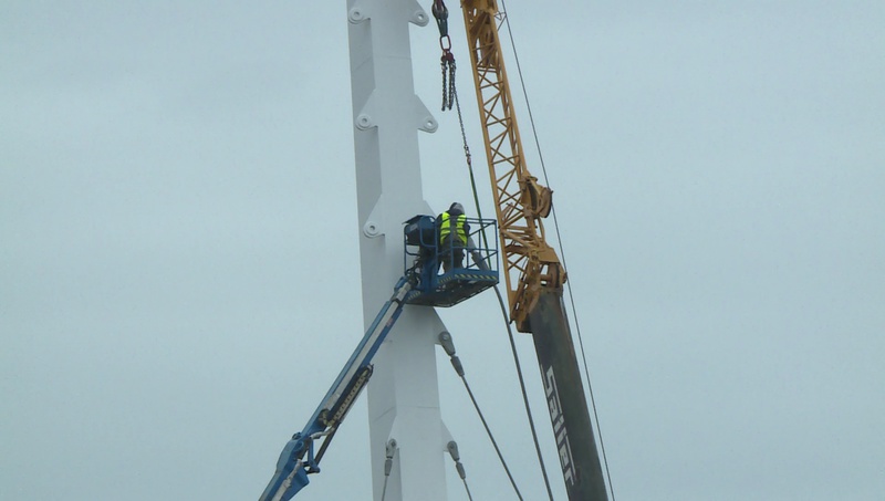 A híd tartópilonját október közepén emelték be a szakemberek. Az 50 méter magas tartóoszlop ezzel a megyeszékhely legmagasabb épített pontja lett.