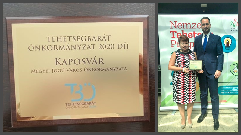 Tehetségbarát önkormányzat-díjat kapott Kaposvár. Az elismerést dr. Pintér Rómeó alpolgármester és Battyányi Beáta civil és roma referens vehette át hétfőn. A somogyi megyeszékhely tehetséggondozó programjai igen sokrétűek, hiszen a legkisebbektől, egészen az egyetemistákig biztosított, hogy a fiatalok tehetsége felszínre kerüljön.