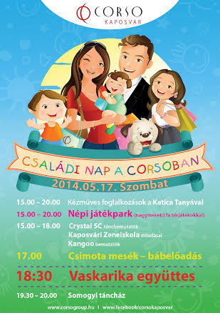 Május 17-én a CORSO Bevásárlóközpont Családi nappal várja a vásárlókat és gyermekeiket. A délután 15 órakor kezdődő programon a gyerekek a Katica Tanya jóvoltából kézműves foglalkozáson vehetnek részt, ahol játszva alkothatnak. A nagyobbak és azok, akik inkább a mozgást és az agytornát választják, jó helyen járnak, hiszen egész nap 22 db nagyméretű készségfejlesztő népi játék várja az érdeklődőket.